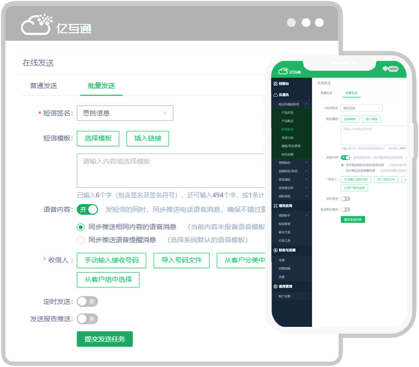 短信發(fā)送平臺網(wǎng)頁版,無需安裝,網(wǎng)頁版操作,可預(yù)覽編輯模式,支持PC和手機端操作。